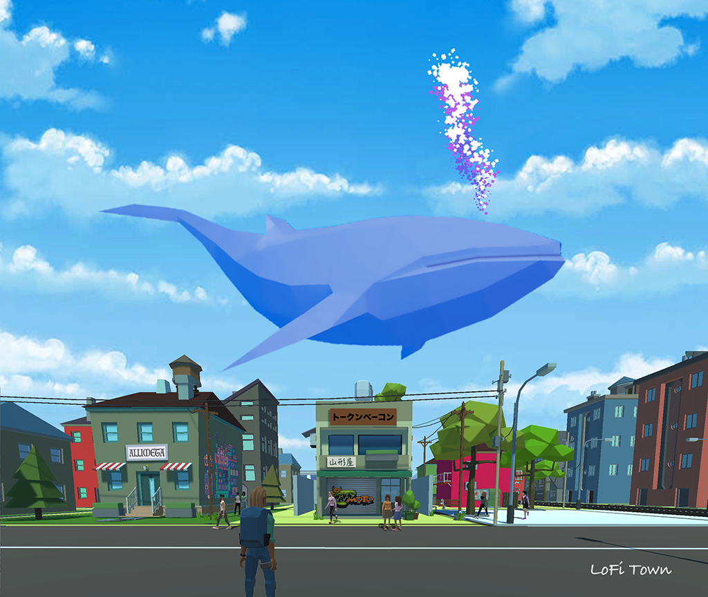 <figure><img src="https://3466736442-files.gitbook.io/~/files/v0/b/gitbook-x-prod.appspot.com/o/spaces%2FsrdgbpodOvU6jpMmO1Wp%2Fuploads%2F2nbmHdMC9bsCyc2Jnb4p%2Fstreet-lofi-blue.png?alt=media&#x26;token=04e18144-a5f5-4a32-a94e-8863973bd0f3" alt=""><figcaption><p>Flying whales are conducting a token airdrop event - in the LoFi Town universe built with AlliMeta</p></figcaption></figure>